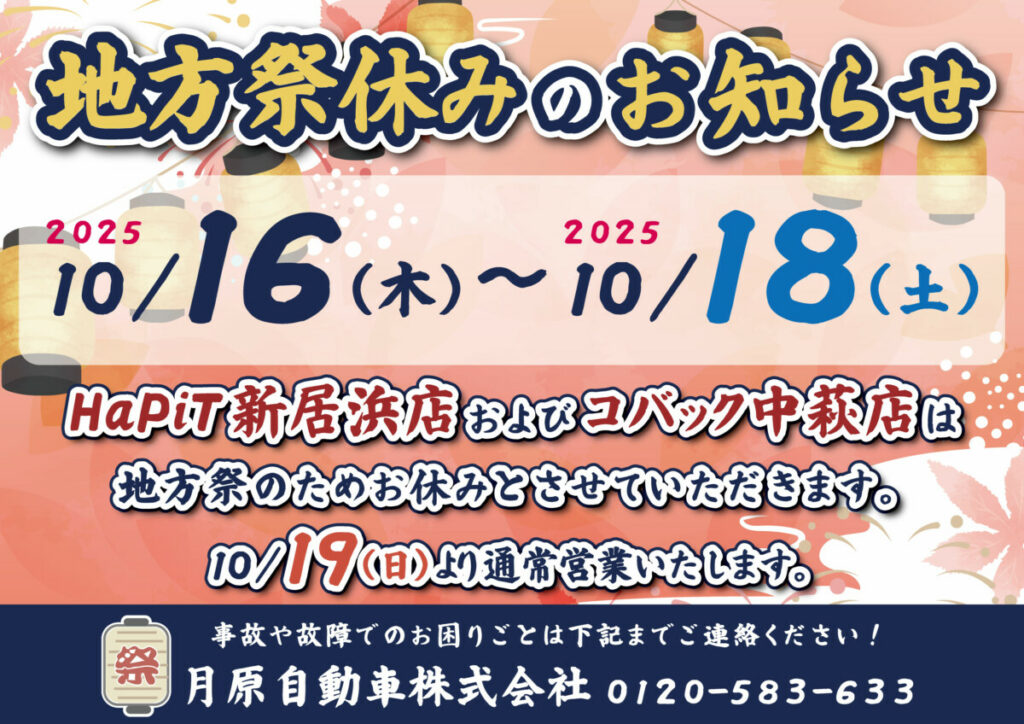 🚗車検のコバック中萩店 地方祭休業のお知らせ🚗